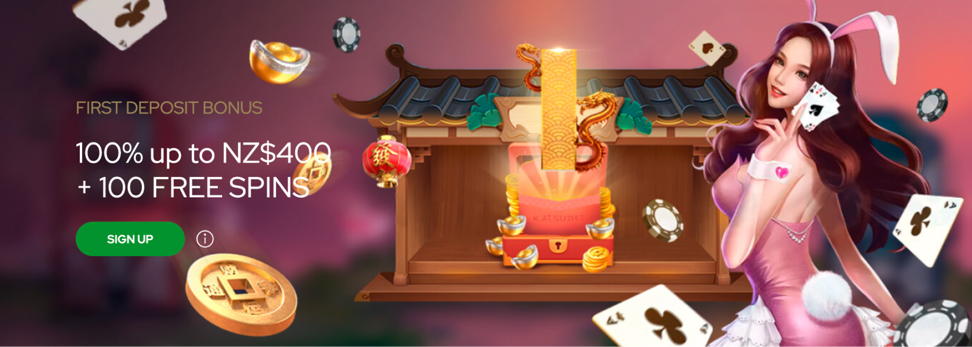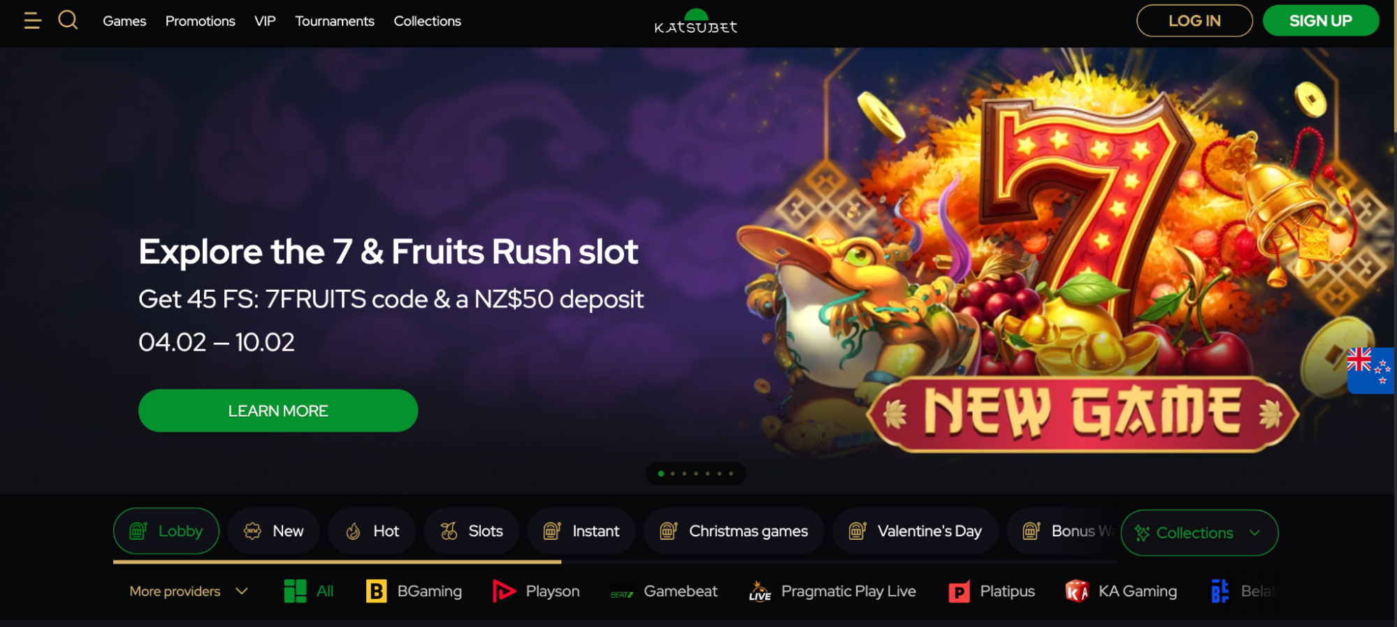 Welcome Katsubet bonus is the primary option customers enjoy. Make your first deposit and get up to NZ$400 and 100 free spins to make your gambling much more profitable and entertaining. Make sure you meet the NZ$20 minimum deposit limit to activate the offer.