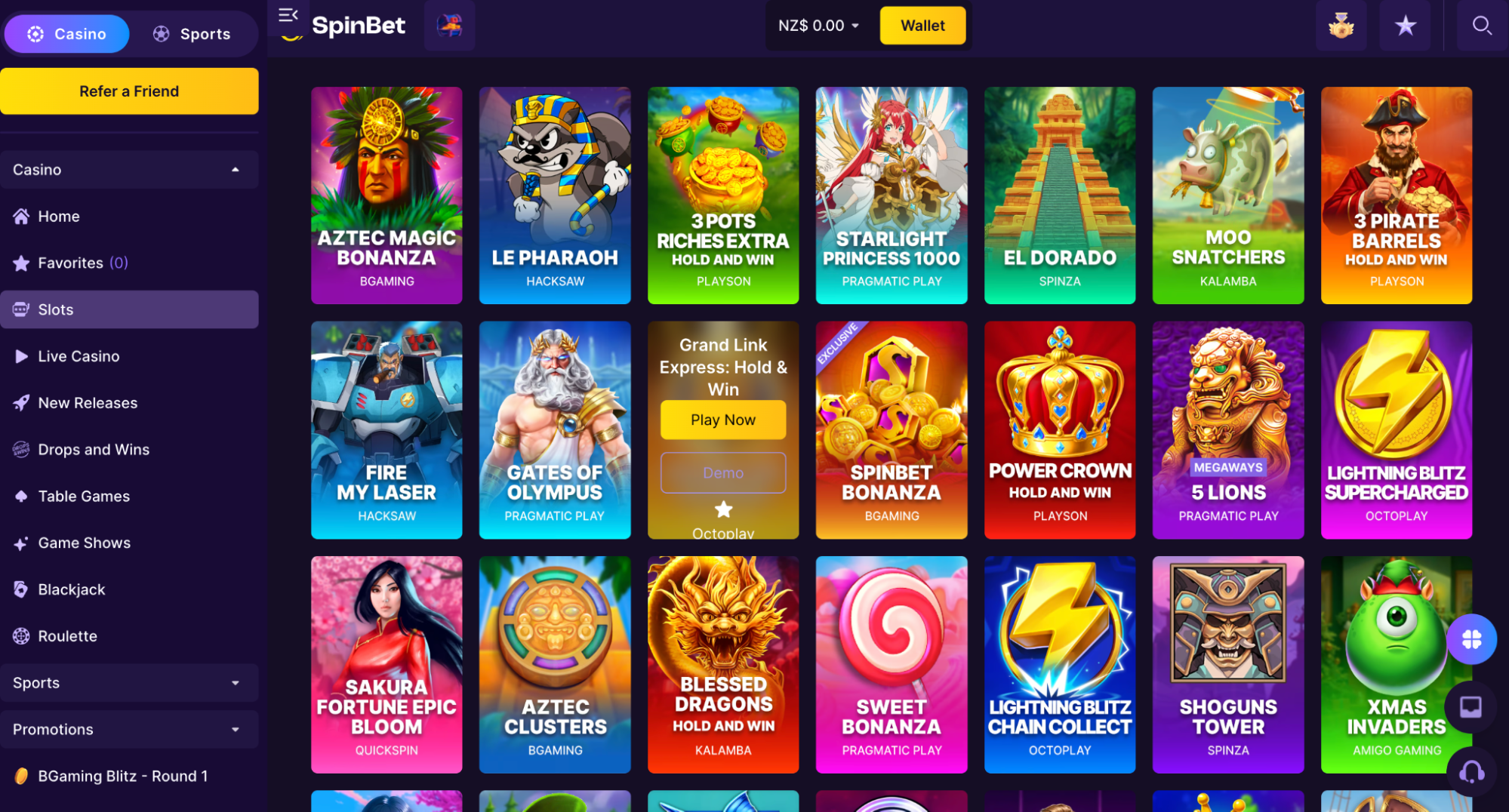 The range of games accessible is one of the important components of a successful online casino. Spinbet NZ reviews show the site has over 6,000 games, so every player may find something they like. This casino provides a wide selection of classic slot machines, video slots, and table games. The portfolio includes games from top suppliers like Evolution Gaming, Pragmatic Play, and NetEnt, providing quality and excitement.